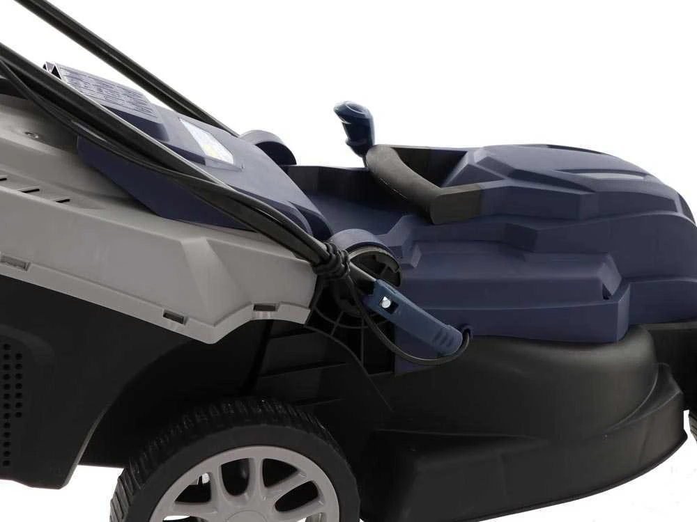 La tondeuse à gazon électrique 3 en 1 BullMach 2000 M avec système d’éjection arrière, coupe mulching et ramassage par bac est idéale pour tondre le gazon sans l’encombrement et le poids d’un moteur thermique.