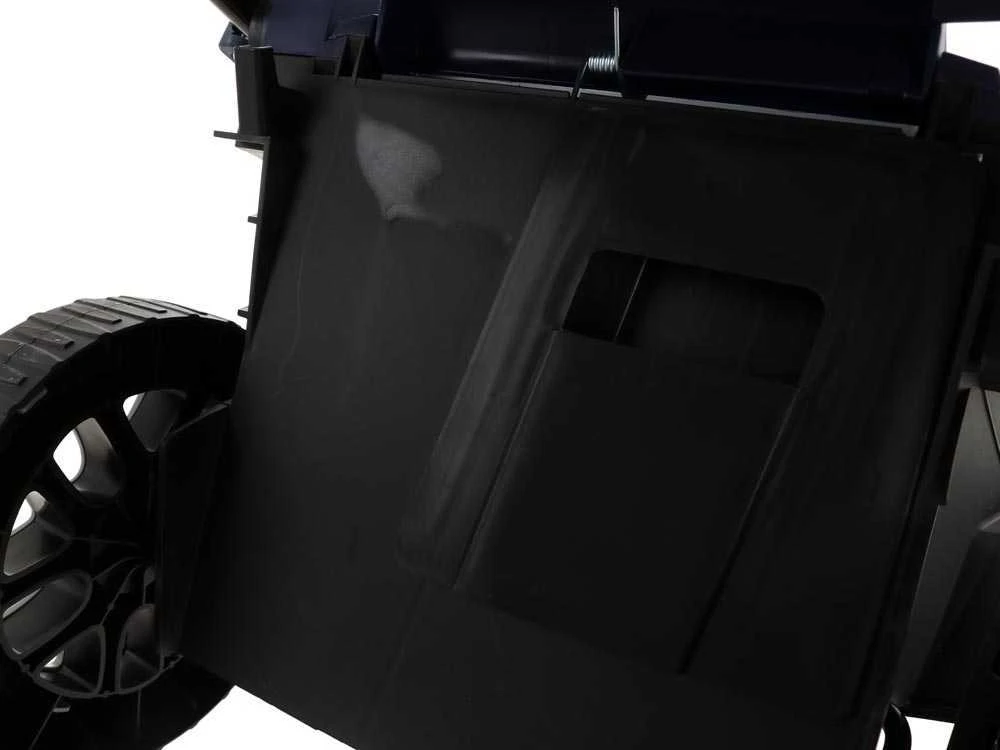 La machine est une traditionnelle 3 en 1, avec éjection arrière et ramassage par bac.