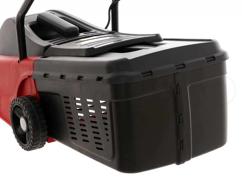 Tondeuse à gazon électrique GeoTech TT 320 avec système d’éjection postérieure et ramassage par bac. Idéale pour tondre le gazon sans l’encombrement et le poids d’un moteur thermique.