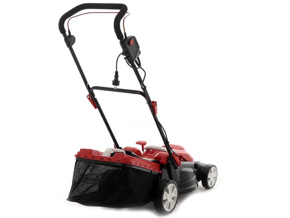 Tondeuse à gazon électrique GeoTech TTD 380 B-MW avec système d’éjection postérieure, coupe mulching et ramassage par bac. Idéale pour tondre le gazon sans l’encombrement et le poids d’un moteur thermique.