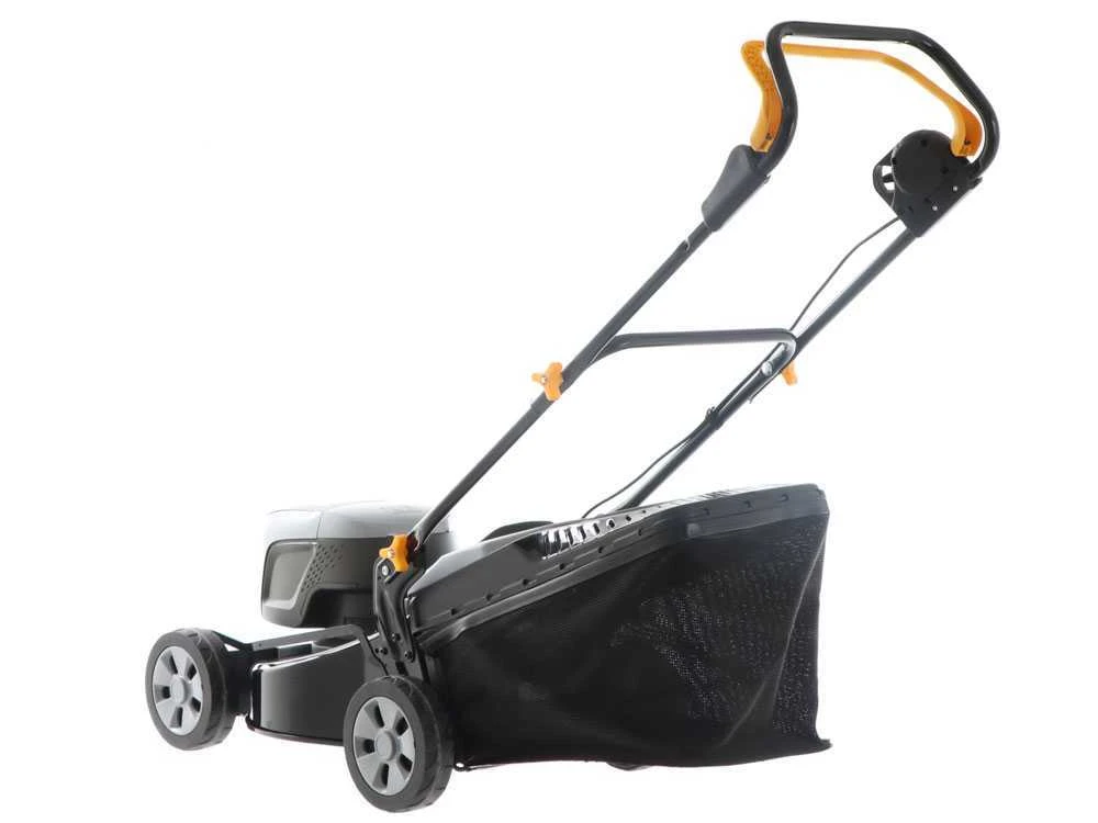 La tondeuse à gazon a une largeur de coupe de 41 centimètres et une hauteur de coupe réglable de 22 à 65 millimètres.