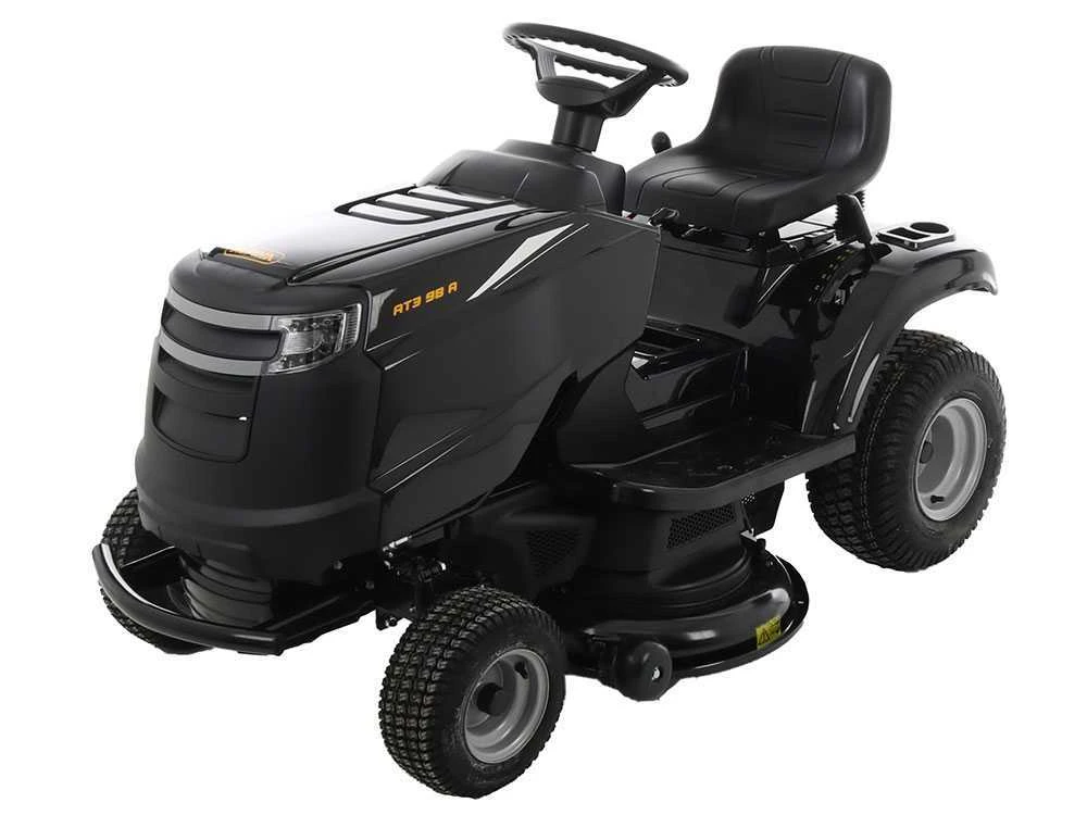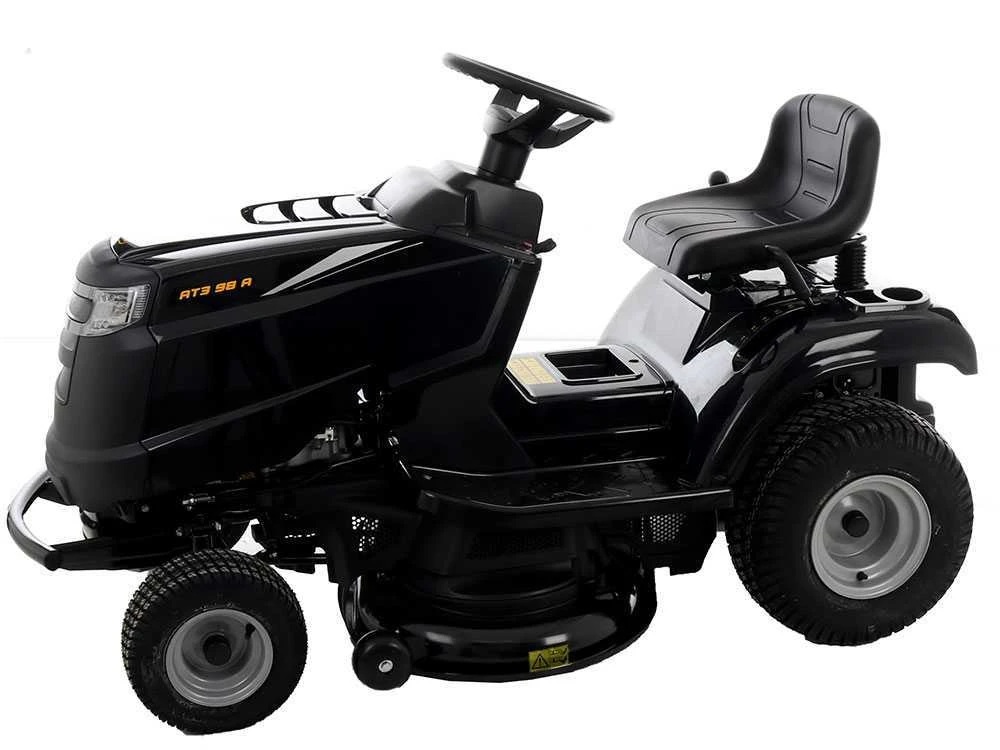 Grâce au grand carter de coupe à 2 lames de 98 cm le rendement de cette tondeuse est vraiment exceptionnel! Elle est également dotée de grandes roues pneumatiques et d’un rayon de braquage large qui facilite les manœuvres même dans les espaces plus réduits.