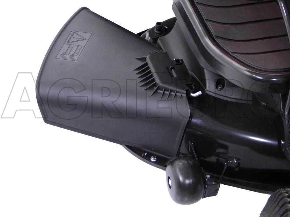 2- MULCHING (OPTIONAL) : Système de coupe qui permet de broyer l’herbe coupée puis de la relâcher sur la pelouse, pulvérisée au point qu’elle semble presque avoir été ramassée. Le problème de l’élimination de l’herbe ne se pose plus et, en se décomposant, l’herbe se transforme ensuite en substance nutritive pour la pelouse elle-même.