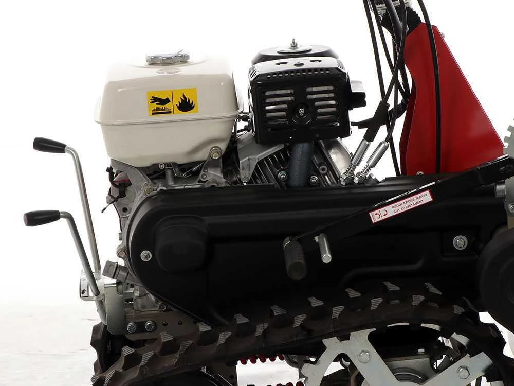 Structure de la chenille : robuste et surdimensionnée. Supérieure par rapport à la moyenne des tondeuses débroussailleuses sur le marché de la même dimension. Le parfait équilibre assure la répartition des charges et une parfaite adhérence au terrain.