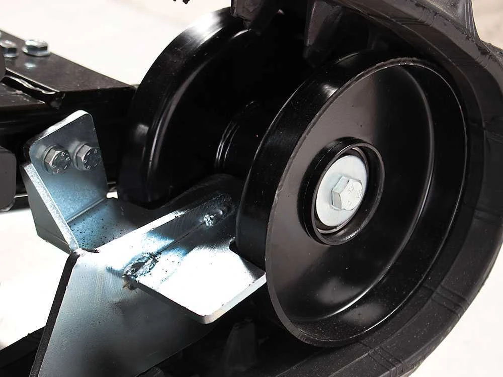 Structure de la chenille: résistante et surdimensionnée. La hauteur et la longueur de la structure sont supérieures à la moyenne des brouettes à moteur de même dimension sur le marché. La roue motrice est réalisée en fonte d’acier. Le parfait équilibre entre la partie antérieure et la partie postérieure assure la répartition des charges et une parfaite adhérence au terrain.
