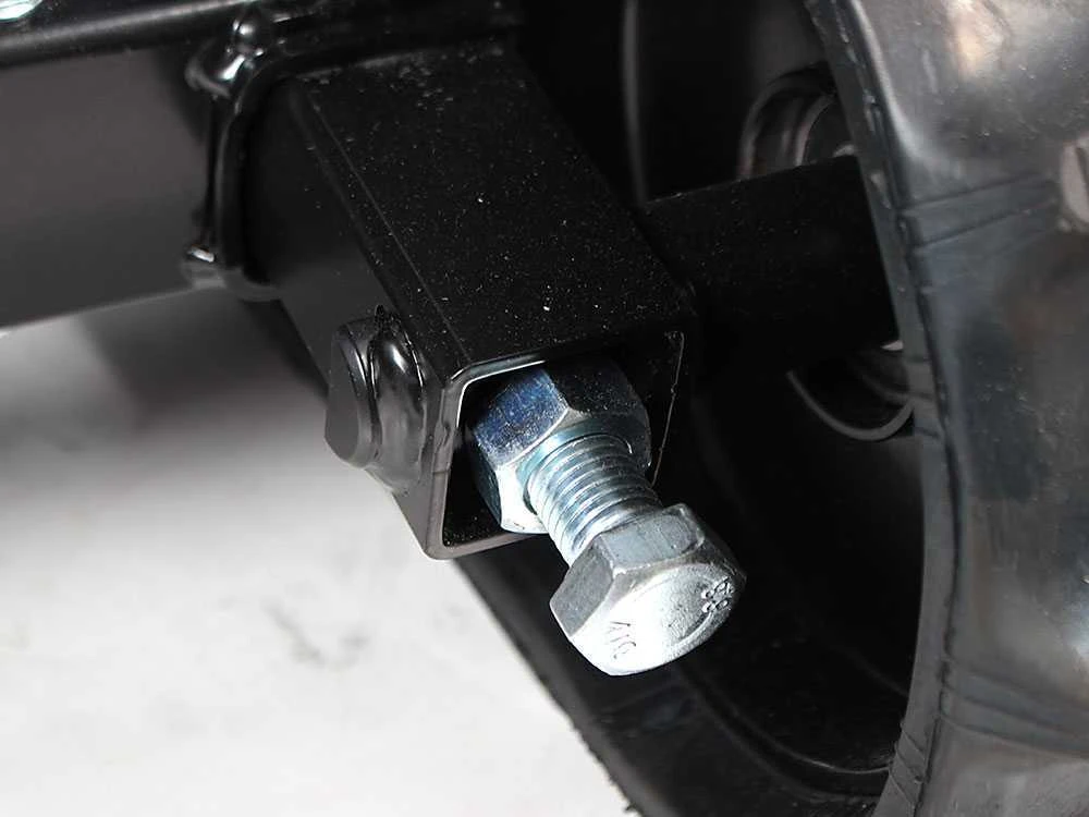 - La poignée inférieure permet de mettre au point mort ou freiner la roue correspondante pour faciliter le changement de direction.