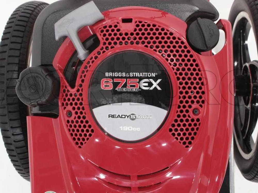 Autre grand avantage du système de transmission par courroie, c’est le levier d’engagement et arrêt de lame. Cet appareil innovant permet d’activer la lame seulement lorsque c’est nécessaire: ceci facilite les déplacements en profitant de la traction à lame arrêtée. Les roues sont d’ailleurs dotées de groupe de traction à engrenages par bain d’huile.