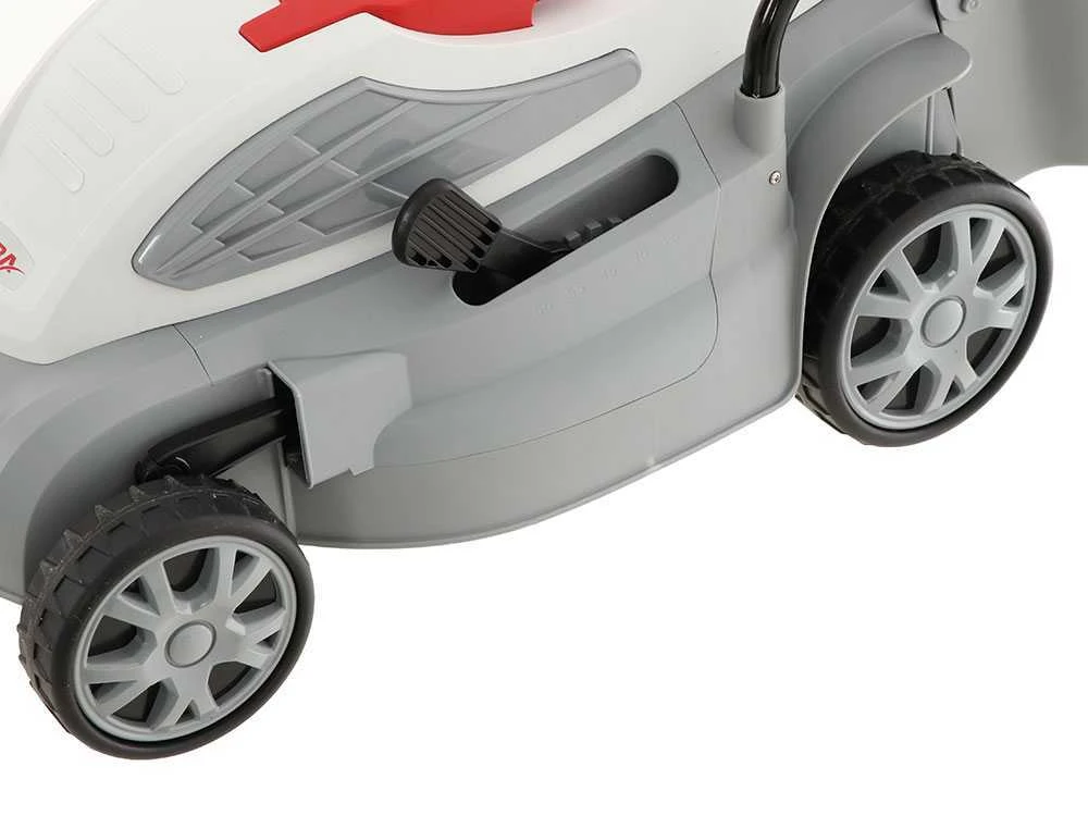 L’IKRA IERM 1434 a une régulation de coupe variable en 5 positions différents variables qui vont de 25 mm jusqu’à 65 mm simplement avec l’utilisation d’un levier placé sur la partie latérale de la tondeuse à gazon.