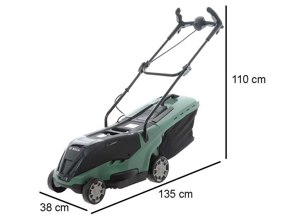 La tondeuse BOSCH monte une lame de coupe multifonction de 38 cm.