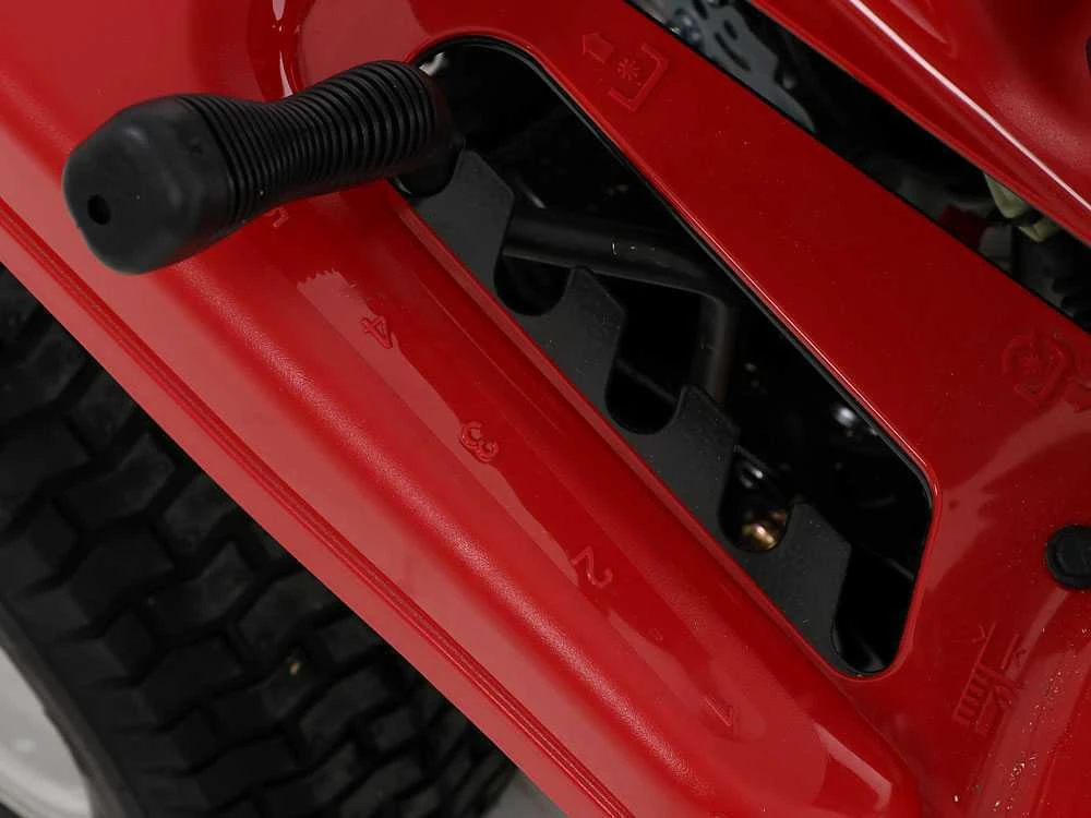 Doté de poignée ergonomique avec engagement d’un mouvement souple pour la régulation de la hauteur de coupe sur 5 positions.