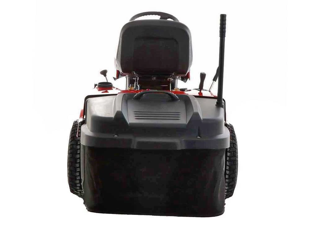Tracteur tondeuse avec bac de ramassage de 240 l avec possibilité, en achetant les accessoires vendus séparément, d’effectuer aussi une coupe mulching ou à éjection arrière.