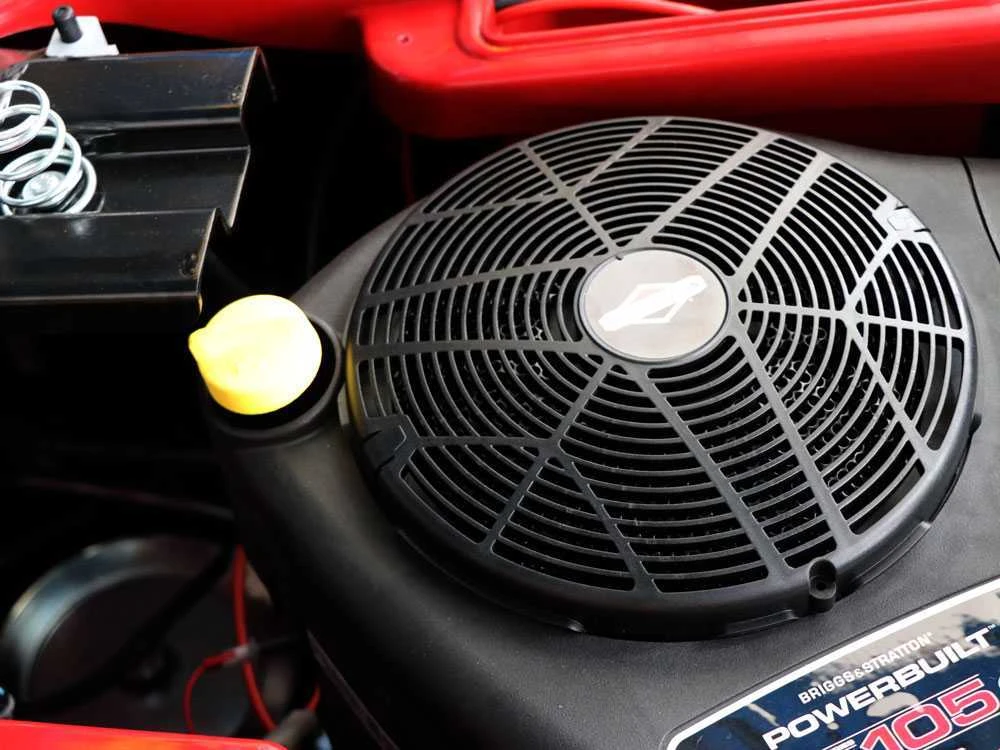 En soulevant le siège et en enlevant cette couverture, vous avez un accès facile au moteur et au filtre à air, ce qui permet des opérations d’entretien rapides.