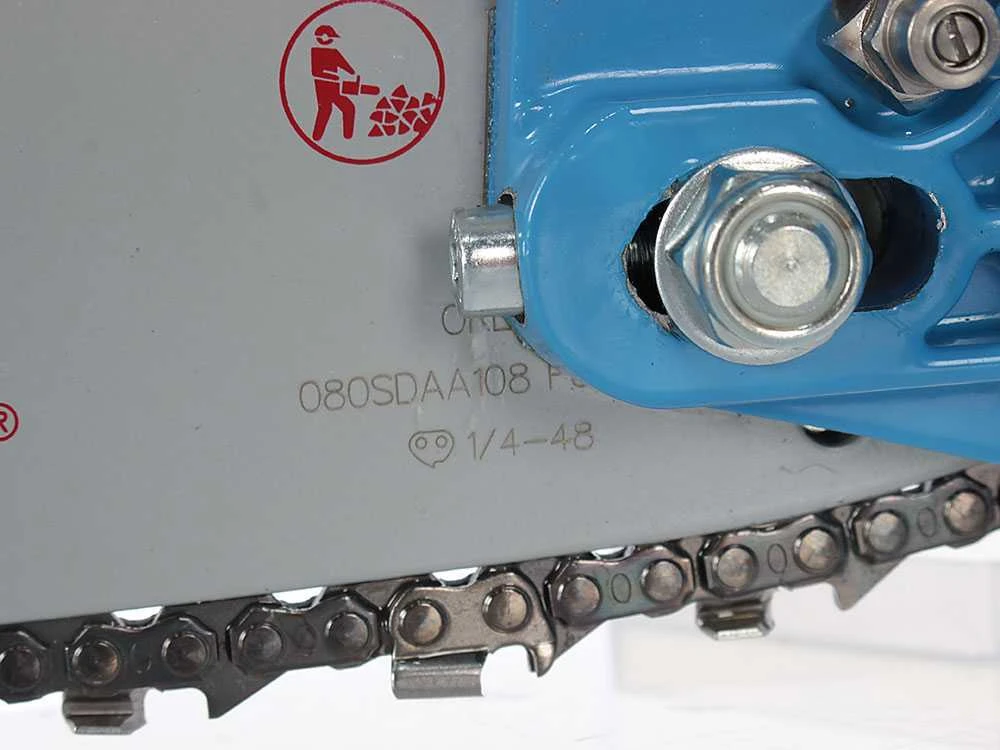 Chaîne avec nouveau pas de 1/4″. Elle résulte nettement plus performante par rapport aux chaîne traditionnelles avec pas de 3/8″, en permettant des coupes beaucoup plus rapides.